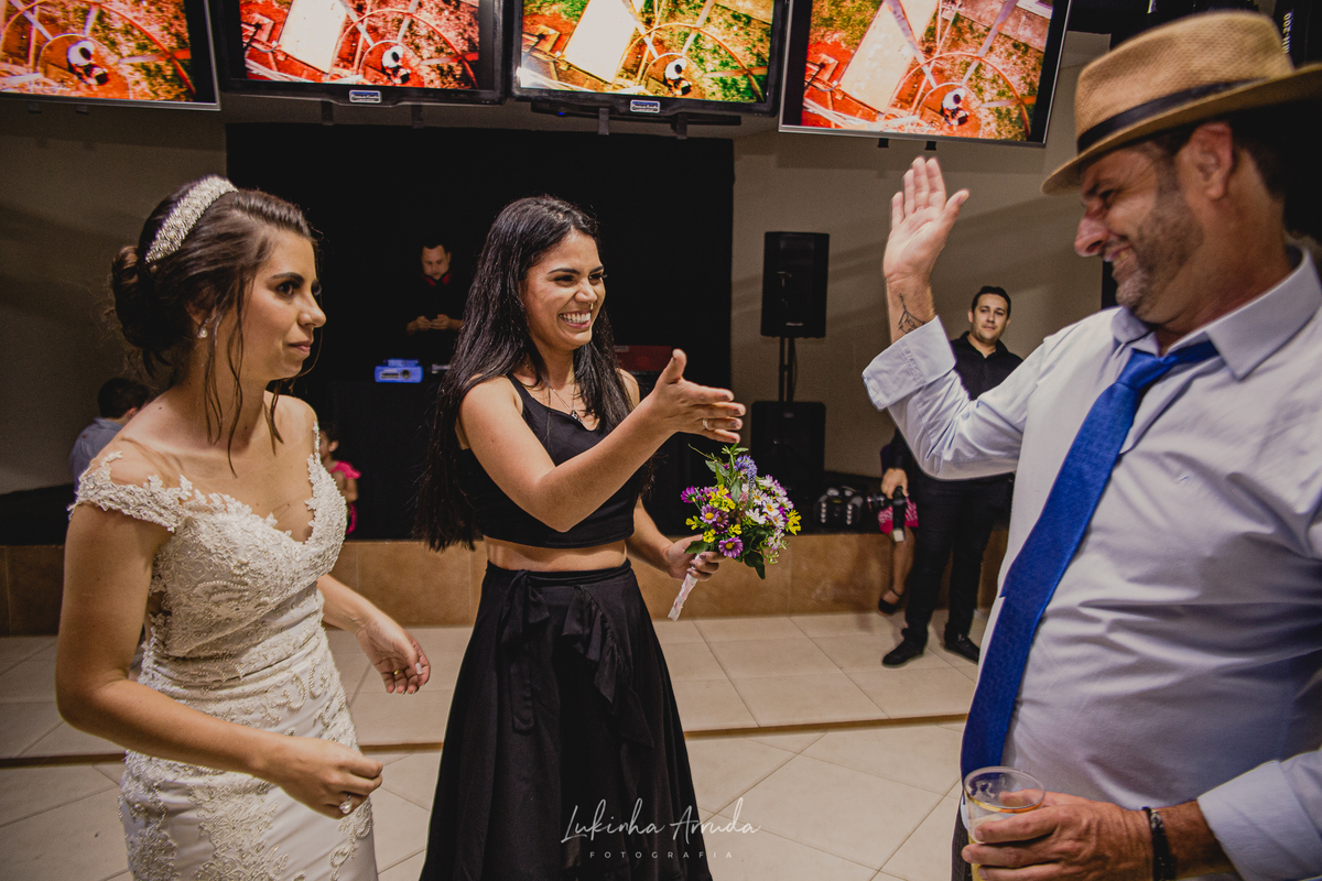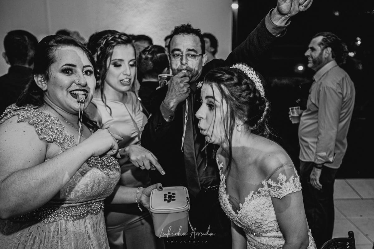 Já a Bea (eu gosto de Bia com i...) tem uma carinha de menininha ainda, mas gosta de uma festa também, e tá tudo certo. As meninas da Bia (ou Bea) são fiéis até o fim, e isso você pode ver se for até a última foto desse lindo casamento!